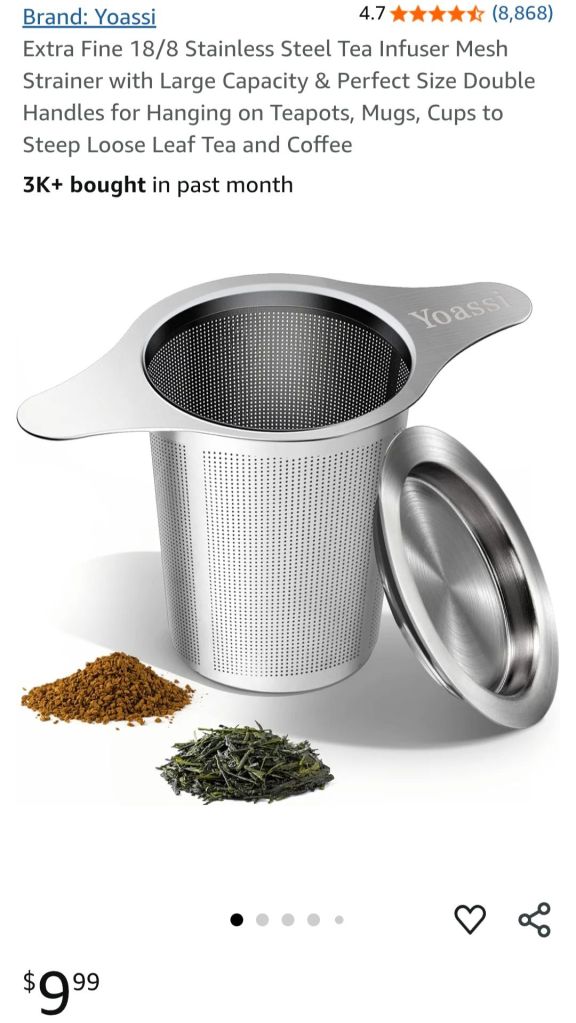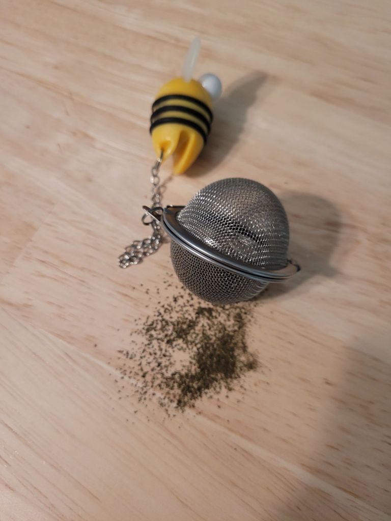 I do have a couple of mesh tea balls, which can hold the contents of a tea bag or loose tea. Generally, the holes are a little too big, and the tea particles go rogue. And to be honest, I have no idea what metal they are made of…